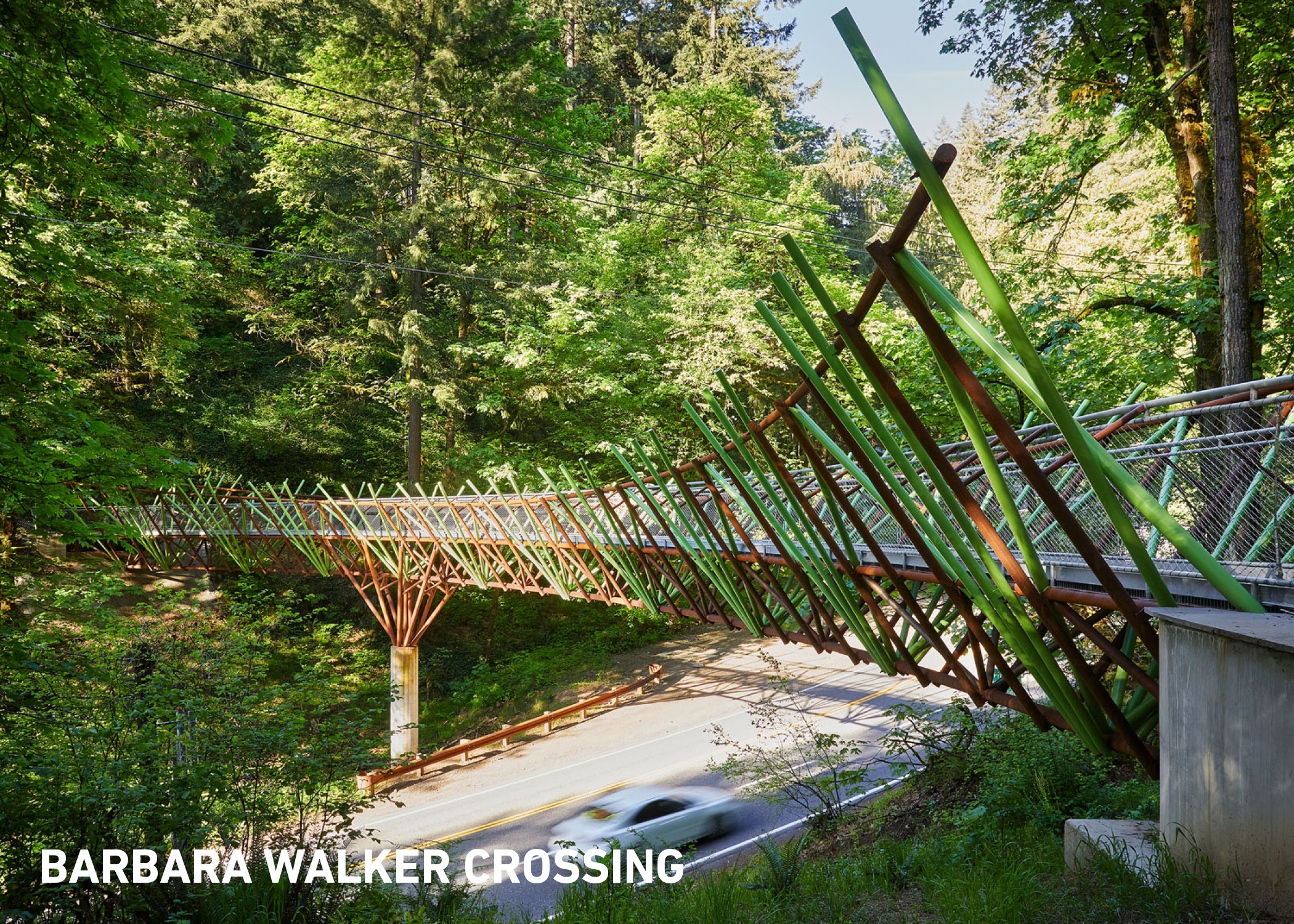 - Barbara Walker Crossing – I always wanted to build a bridge. Turns out, it is a challenging feat! This bridge, a pedestrian crossing, connects the popular Wildwood Trail by crossing West Burnside Street. Due to the busy nature of the street, the bridge was fabricated almost entirely in Northeast Portland then cut in half to be re-assembled, lifted by crane and welded back together while limiting impact on traffic on a busy road. The project was both incredibly challenging and rewarding.