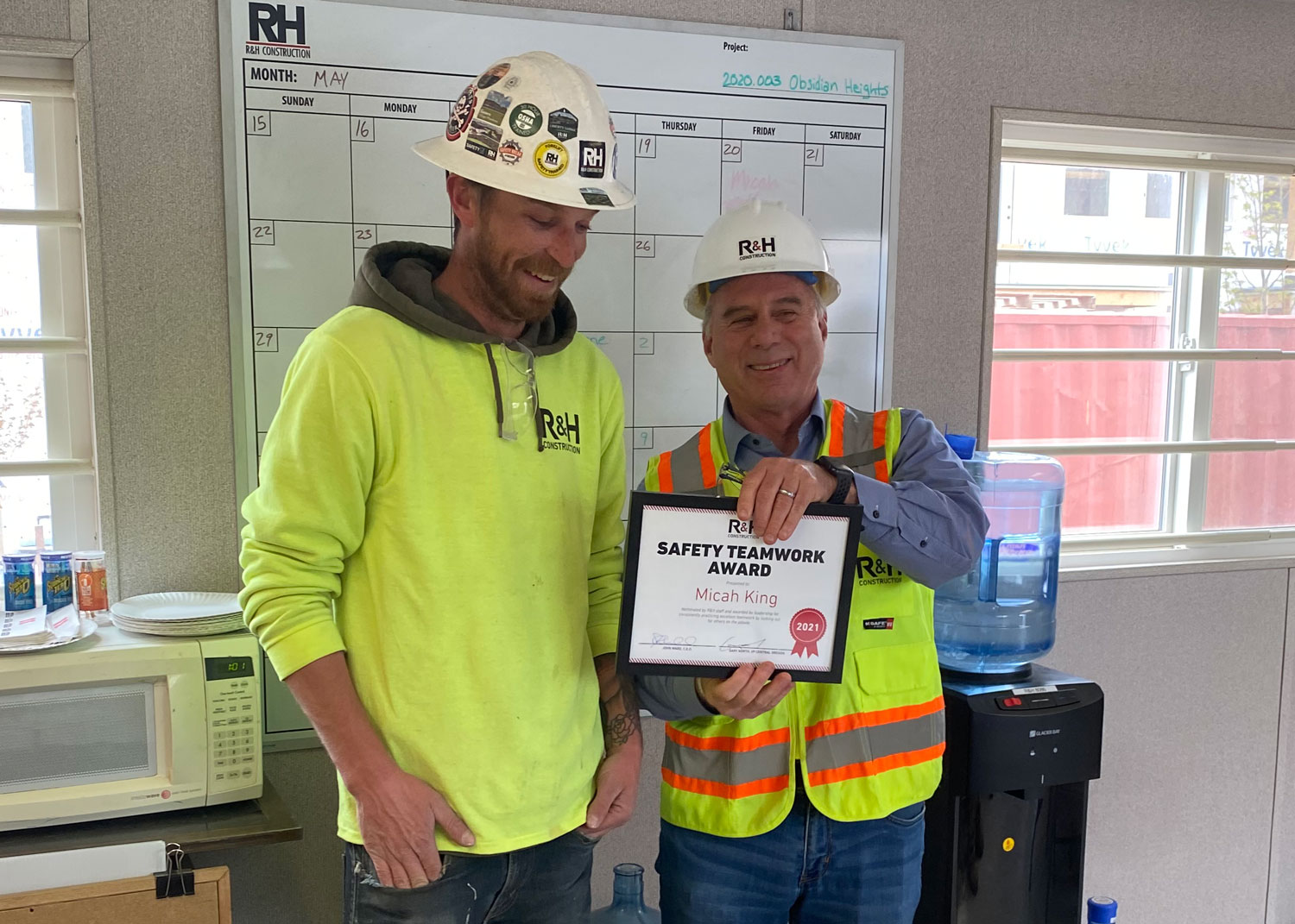 John awarding R&H team member Safety Awards during Construction Safety Week (2020-2022)