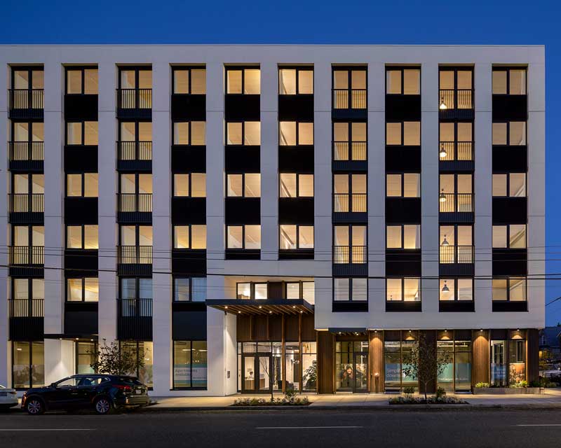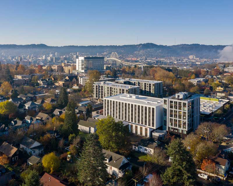 Located in North Portland’s Williams District, The Canyons is a one-of-a-kind mixed-use development offering a vibrant urban lifestyle for residents of all ages and abilities. Designed with sustainability and accessibility in mind, The Canyons was constructed using cross-laminated timber and is home to barrier-free living units, ample building amenities, a unique central atrium, an underground parking structure and more.