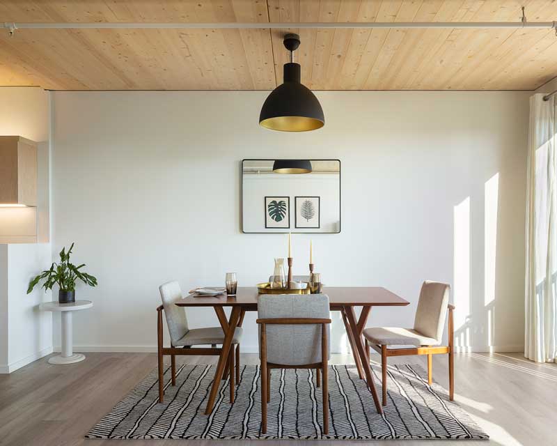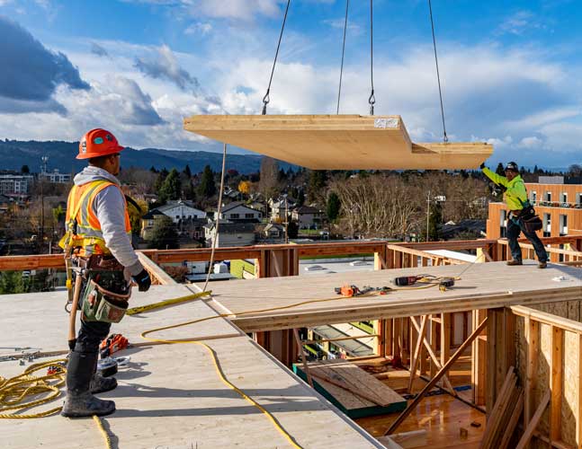 It’s beautiful: Together with the advantages to the environment and to the project, using CLT provides several benefits to residents at The Canyons. The CLT can be seen throughout the building including within each unit. All units feature a beautiful exposed wood ceiling that brings warmth and a natural element into each apartment. Wood is known to have a relaxing effect on people, providing a sense of calm in apartments which is especially beneficial in a COVID-era environment where residents are working from their homes. In The Canyons, the wood invites the beauty of the Pacific Northwest indoors and into each residents’ living spaces.