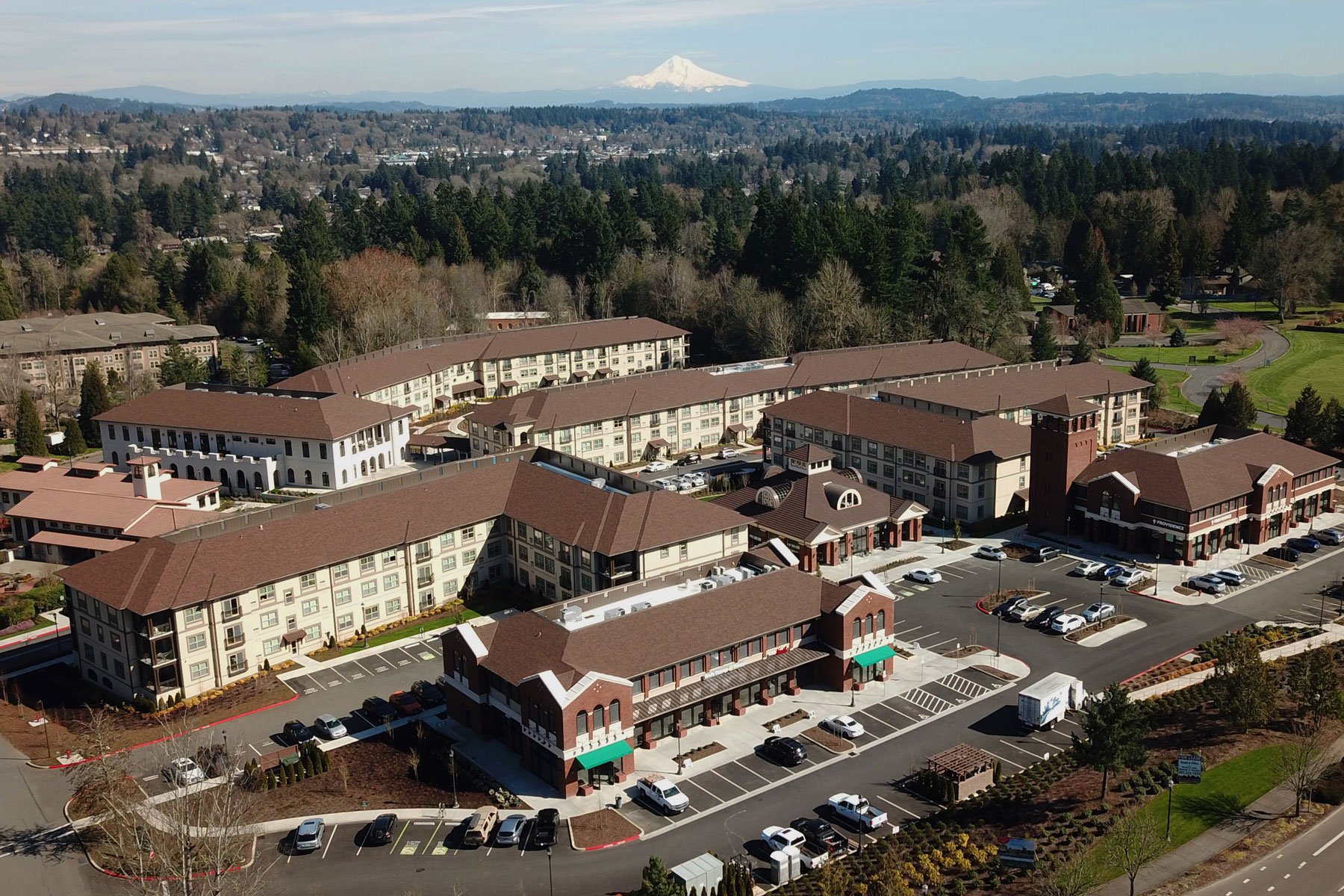 When the Sisters later decided to add more housing and services, they took the opportunity to amplify their presence in the greater Lake Oswego community. The plan—what we now know as The Village at Mary’s Woods—was developed for a massive expansion to include independent and assisted living, wellness amenities, and public-facing retail. The expansion reaches across the west field, greets the public from Highway 43, and integrates the new Village at Mary’s Woods development with the existing Mary’s Woods community. As Project Architect George Signori said, “Interestingly, the last thing the Sisters built is actually their new front door.”